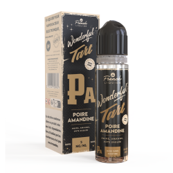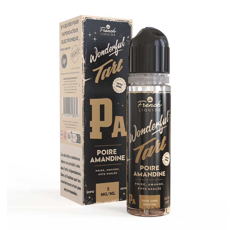 Poire Amandine 50ml de la gamme Wonderful Tart par Le French Liquide est un e-liquide gourmand sans nicotine, conditionné dans un flacon de 60 ml rempli à 50 ml.