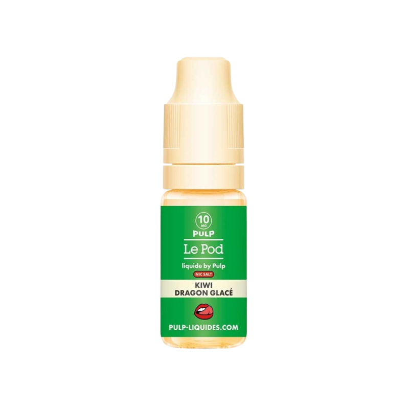 L’e‑liquide Kiwi Dragon Glacé 10 ml de la gamme Le Pod Liquide by Pulp associe des arômes de kiwi, fruit du dragon et menthe verte, pour une vape fruitée glacée.